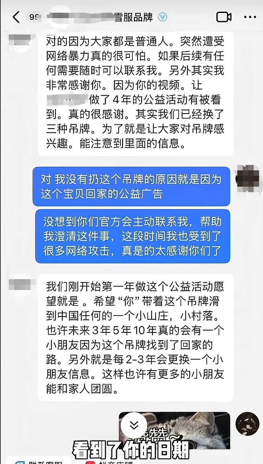滑雪服商家为“吊牌姐”澄清事实并送上新衣:品牌成立4年,已更换3批寻亲吊牌